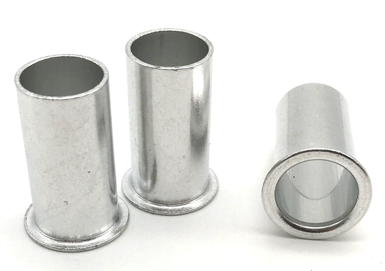 El diámetro de un remache de aluminio es un parámetro clave que determina su capacidad de carga. Cuanto mayor sea el diámetro, mayor será la resistencia a la tracción y al corte del remache, lo que lo hace adecuado para conectar materiales más gruesos o soportar cargas mayores. Por ejemplo, los remaches con un diámetro de 4,8 mm se utilizan a menudo para conectar carrocerías de automóviles, mientras que los remaches con un diámetro de 6,4 mm se pueden utilizar en estructuras mecánicas pesadas. La longitud del remache debe determinarse de acuerdo con el espesor total de los materiales que se van a conectar y, por lo general, es de 1 a 2 mm más larga que el espesor total de los materiales para garantizar que la cabeza del remache pueda formarse y apretarse completamente después del remachado. Los remaches de aluminio suelen estar hechos de aleación de aluminio 6061 o 2024. El primero tiene buena resistencia a la corrosión y procesabilidad, mientras que el segundo tiene mayor resistencia. Los tratamientos de superficie incluyen anodizado, recubrimiento electroforético, etc., que pueden mejorar la resistencia a la corrosión y la estética. Los hay de varios colores como plata, negro, dorado, etc.