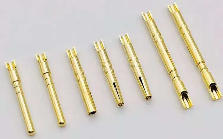 Los pines del conector son pines individuales mecanizados utilizados para varias aplicaciones complementarias y son funcionalmente los bloques de construcción dinámicos dentro de un sistema de interconexión. Los pines del conector comúnmente se sujetan a las placas de circuito impresas u otras carcasas al ser ajustados a la prensa, revoltados (remachados), delgarizados o soldados. Los pines terminales de PCB sirven no solo como una ruta conductora para un circuito eléctrico, sino que también proporcionan resistencia a un módulo de ensamblaje como interfaz mecánica.