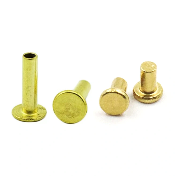 El latón es fácil de mecanizar y de conformar en caliente y en frío, lo que hace que el proceso de producción de remaches de cabeza plana de latón sea relativamente simple y rentable. El latón exhibe una excelente deformación plástica durante el proceso de remachado, lo que permite una conexión fuerte. El estampado en frío es el proceso principal para fabricar remaches de cabeza plana de latón. El alambre de latón se corta y extruye utilizando una máquina de estampación en frío para formar la forma básica del remache. Este proceso se puede realizar a temperatura ambiente, aprovechando la capacidad de deformación plástica del metal sin necesidad de calentarlo. Los remaches de cabeza plana de latón se utilizan comúnmente para conectar componentes conductores en productos electrónicos y eléctricos. Su excelente conductividad y resistencia a la corrosión los convierten en conectores eléctricos ideales. Por ejemplo, se utilizan en interruptores, relés y bloques de terminales. Los remaches de cabeza plana de latón también se usan comúnmente para conectar varios productos de hardware, como cerraduras, bisagras y cajas de herramientas. La estética y la durabilidad del latón lo hacen particularmente popular en herrajes de alta gama.