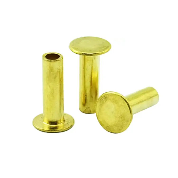 Remaches semi-tubulares de latónTambién llamado remaches semi -huecos de latón son una especie de remaches con un agujero poco profundo en la punta, frente a la cabeza. Ofrecen una excelente resistencia a la corrosión, y con su alta conductividad térmica, los remaches de latón son ideales para su uso en aplicaciones eléctricas y electrónicas.