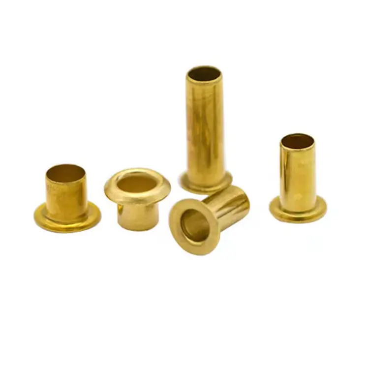 Los materiales para los remaches con ojal incluyen aluminio, latón o acero, y cada uno ofrece ventajas específicas en términos de resistencia a la corrosión, solidez y costo. Los remaches huecos se engarzan en un orificio preperforado para reforzar el material y proporcionar un borde acabado, ampliamente utilizados en textiles, artículos de cuero, artículos de papelería, lonas, cortinas para ventanas y artesanía.