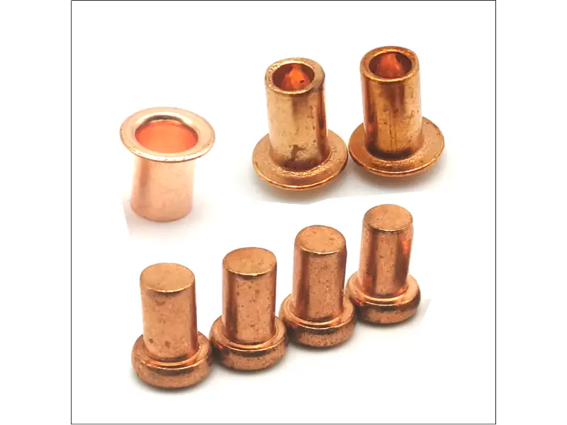 Vienen en todos los tipos estándar. puedes conseguirremaches de cobre macizo, que son resistentes y se usan donde se necesita mucha fuerza en la unión, como en lonas pesadas o techos de cobre. Hayremaches de cobre semitubulares, que son más rápidos de fraguar y excelentes para artículos de cuero o ensamblajes más livianos. Y hayremaches de cobre tubulares completos que actúan como casquillos o pivotes. Los estilos de cabeza también varían (cabeza redonda, cabeza plana, avellanada) dependiendo de si desea que el remache se vea o quede al ras.