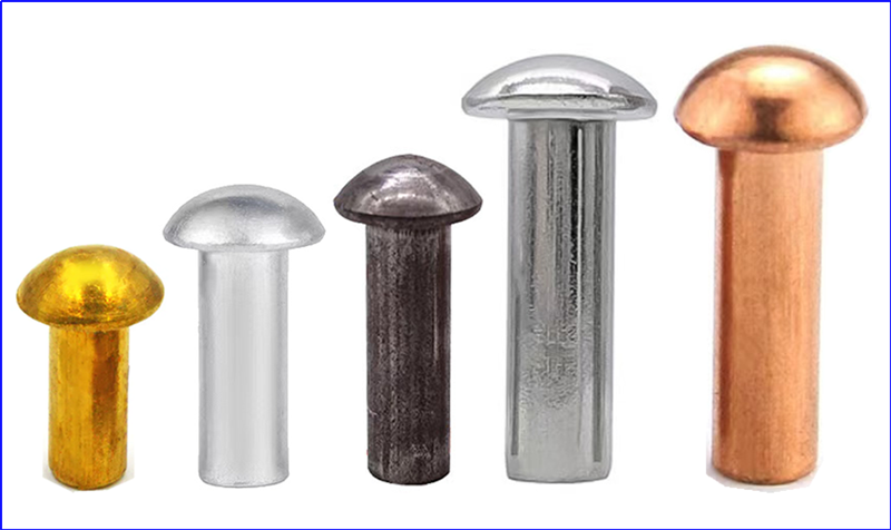 Cabeza redonda: un remache de cabeza redonda es un estilo simple y versátil. Su superficie superior redondeada a menudo se usa en aplicaciones donde la estética es menos importante.Riebres de la cabeza redonda se utilizan en aplicaciones estructurales e industriales.