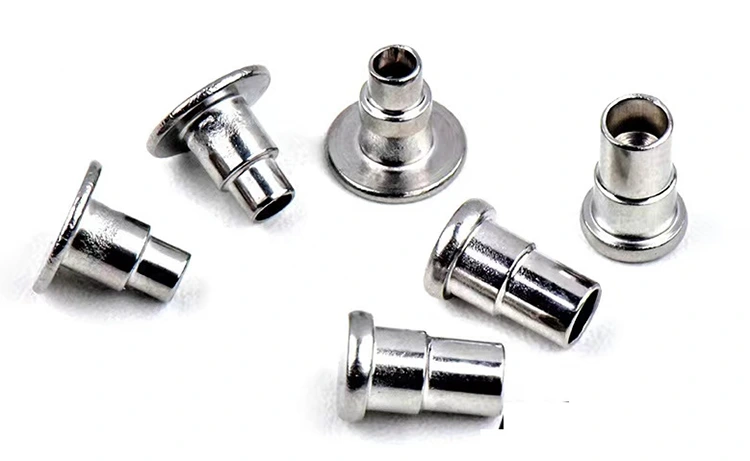 Los remaches de hombro se pueden dividir en remaches de hombro macizos y remaches de hombro semitubulares. Los remaches de hombro sólidos son similares a los ordinarios.remaches sólidos,pero tiene una o dos capas más. En términos generales, los remaches de hombro tienen al menos dos capas de varillas con diferentes diámetros, y el diámetro disminuye gradualmente desde la cabeza hasta la cola. Se pueden utilizar para remachar una variedad de paneles con diferentes espesores y aberturas, logrando así un efecto de sujeción firme. Los remaches de hombro semitubulares son similares a los ordinarios.remaches semitubulares. Al diseñar remaches de hombro, también se deben considerar las diferentes propiedades de los distintos materiales y escenarios de aplicación. Por ejemplo, en ambientes húmedos, los remaches de hombro de acero inoxidable son definitivamente la primera opción.